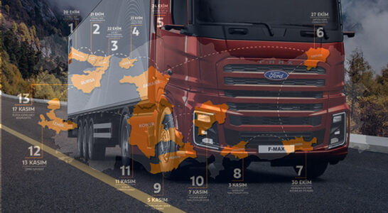 Ford Trucks, ağır ticari araç pazarındaki referans modeli F-MAX’in yeni yüzü ile 20 Ekim-17 Kasım 2025 tarihleri arasında gerçekleşecek Türkiye turuna çıkıyor. Ford Trucks, ağır ticari araç segmentindeki öne çıkan modeli F-MAX’in yeni yüzünü, 20 Ekim–17 Kasım 2025 tarihleri arasında düzenleyeceği Türkiye turu kapsamında kullanıcılarla buluşturacak. 12 ili kapsayan etkinlik boyunca lojistik ve ağır ticari … Yeni F-MAX Türkiye turu başlıyor okumayı sürdür