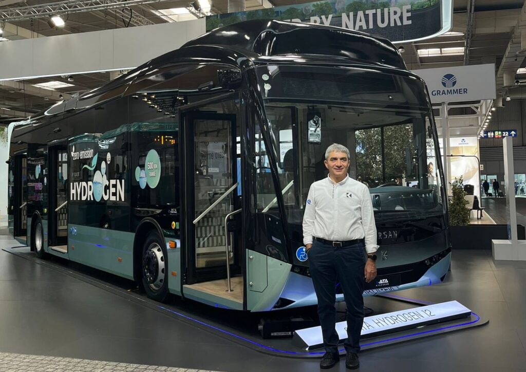 Karsan, Almanya’nın Hannover şehrinde düzenlenen IAA Transportation Fuarı’nda hidrojen çağını başlattı. Sayısız başarılara imza attığı elektrikli ve otonom ürün ailesine hidrojen yakıtlı e-ATA HYDROGEN’i de ekleyen Karsan, elektrikli mobiliteyi başka bir boyuta taşıyor. “Mobilitenin Geleceğinde Bir Adım Önde” vizyonu ile hareket eden Karsan, yine öncü davranıp sürdürülebilir ulaşım konusunda bir adım daha atıyor. e-ATA HYDROGEN’in dünya lansmanını Almanya’da gerçekleştiren Karsan CEO’su Okan Baş, “Karsan olarak öncü rolümüzü bir kez daha gösterdik. Hidrojen yakıt teknolojisine adım atarak toplu ulaşımda yeni bir çağ başlatıyoruz. Son 5 yıl içinde 6 metre e-JEST, 8 metre elektrikli ve otonom e-ATAK ve 10-12-18 metre e-ATA’dan sonra şimdi de hidrojenli 12 metre e-ATA aracımızı devreye aldık. Bu anlamda yine öncü davranıp ürün gamımızı genişleterek sürdürülebilir ulaşım konusunda bir adım daha attık. “Mobilitenin Geleceğinde Bir Adım Önde” vizyonumuz ile geleceğin elektrikli hidrojen yakıt hücreli aracımızı geliştirip, dünyaya tanıttık” dedi.