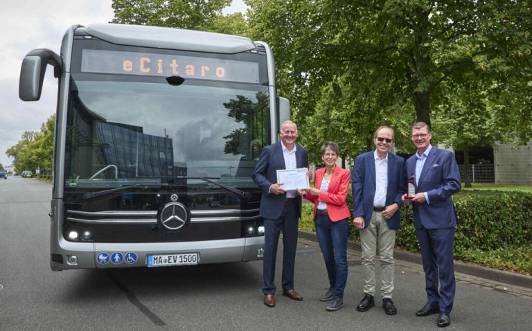Hannover’de düzenlenen 2024 IAA Transportation’ın bir parçası olarak “2024 Yılı Elektrikli Otobüs Şampiyonu” ödülü, Dieter Hanke ve Kirsten Krämer tarafından Daimler Buses CEO’su Till Oberwörder ve Daimler Buses Pazarlama&Satış ve Müşteri Hizmetleri Yöneticisi Mirko Sgodda’ya takdim edildi. Konuya...