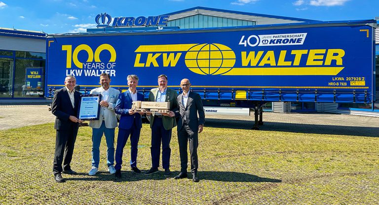 40 bininci Krone treyler LKW Walter’in Temmuz 31, 2024 Krone, 40.000’inci treylerin devir teslim töreni için Avusturyalı taşımacılık kuruluşu LKW WALTER’in üst düzey yöneticileri ile bir araya geldi. Ziyarette Werlte ve Herzlake’teki Krone fabrikalarının yanı sıra Spelle’deki Krone tarım makineleri üretim tesisi de ziyaret edildi. Burada Avusturya’dan Tamamını Okuyun »