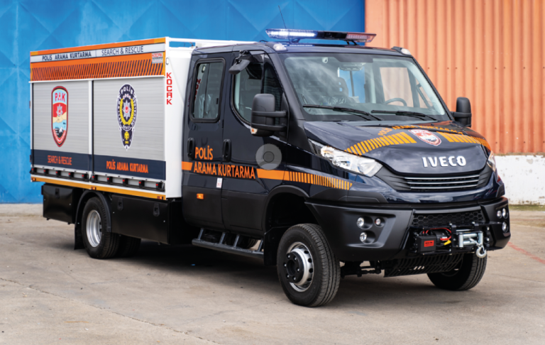 Şasi Iveco’dan üstyapı Koçak Kasa’dan Aralık 21, 2021 EGM’nin PAK birimine yeni arama kurtarma araçları.Emniyet Genel Müdürlüğü-Polis Arama Kurtarma Birimi filosunun Daily 70C18HD WX 4×4 şasili yeni arama kurtarma araçlarının hafif, dayanıklı ve işlevsel üstyapıları Koçak Kasa tarafından imal edildi. Çok çeşitli görevleri yerine getiren arama Tamamını Okuyun »