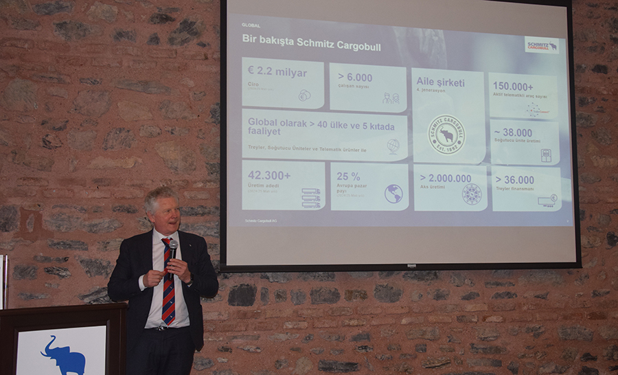 Avrupa Treyler üretiminde yıllık üretim sayıları ile ilk sırada yer alan Schmitz Cargobull AG son dönemde üretim ve hizmetlerini küresel bir ölçekte sürdürüyor. Firma Avrupa ülkeleri ile birlikte beş kıta 40 ülkede satış, üretim, ortaklıklarla yerini alarak treyler endüstrisinin günümüzde küreselleştirdiği bir iş alanı olduğunu gösteriyor. 2017 öncesinde Türkiye pazarında ürünleri ve temsilci firma, satış organizasyonu ile yer alan firma Schmitz Cargobull 2017’de Türkiye pazarına kendine ait satış ve hizmet organizasyonu ve oluşturulan üretim tesisisi ile üretici olarak katıldı. Geçen süre içinde firma Türkiye pazarında etkili, kendi merkez servisi ile 32 noktada satış sonrası hizmet veren marka konumunda. Ürün ve hizmet tanıtımı toplantısında firma yöneticileri kendi alanları ile ilgili ayrıntılı sunumlar yaparak bilgi verdiler. Toplantı sonrası yapılan basın açıklamasında toplantı sunum ve konuşmalarının bir özeti paylaşıldı.